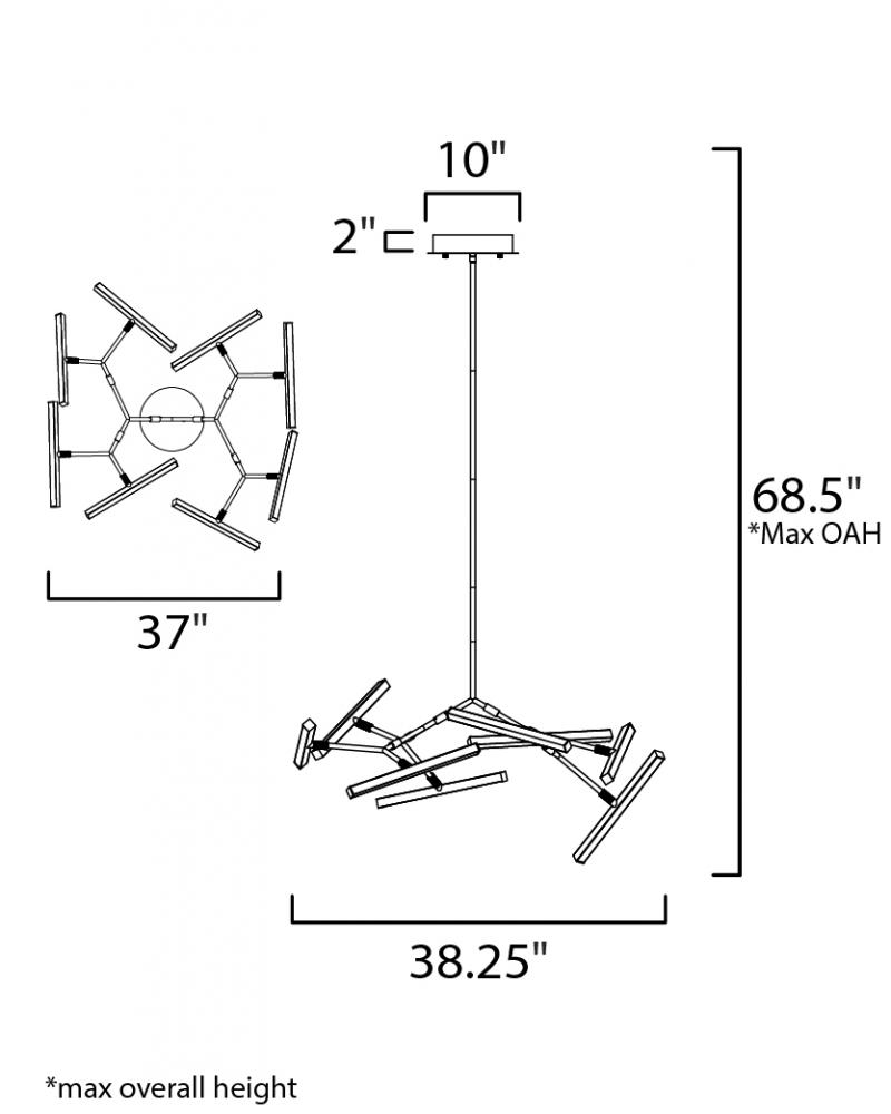 This unique design features arms that branch in multiple directions, both rotating and pivoting that allows light to be directed where needed. The Black finish is a dramatic contrast to the V shaped acrylic diffuser which disperses light in two directions