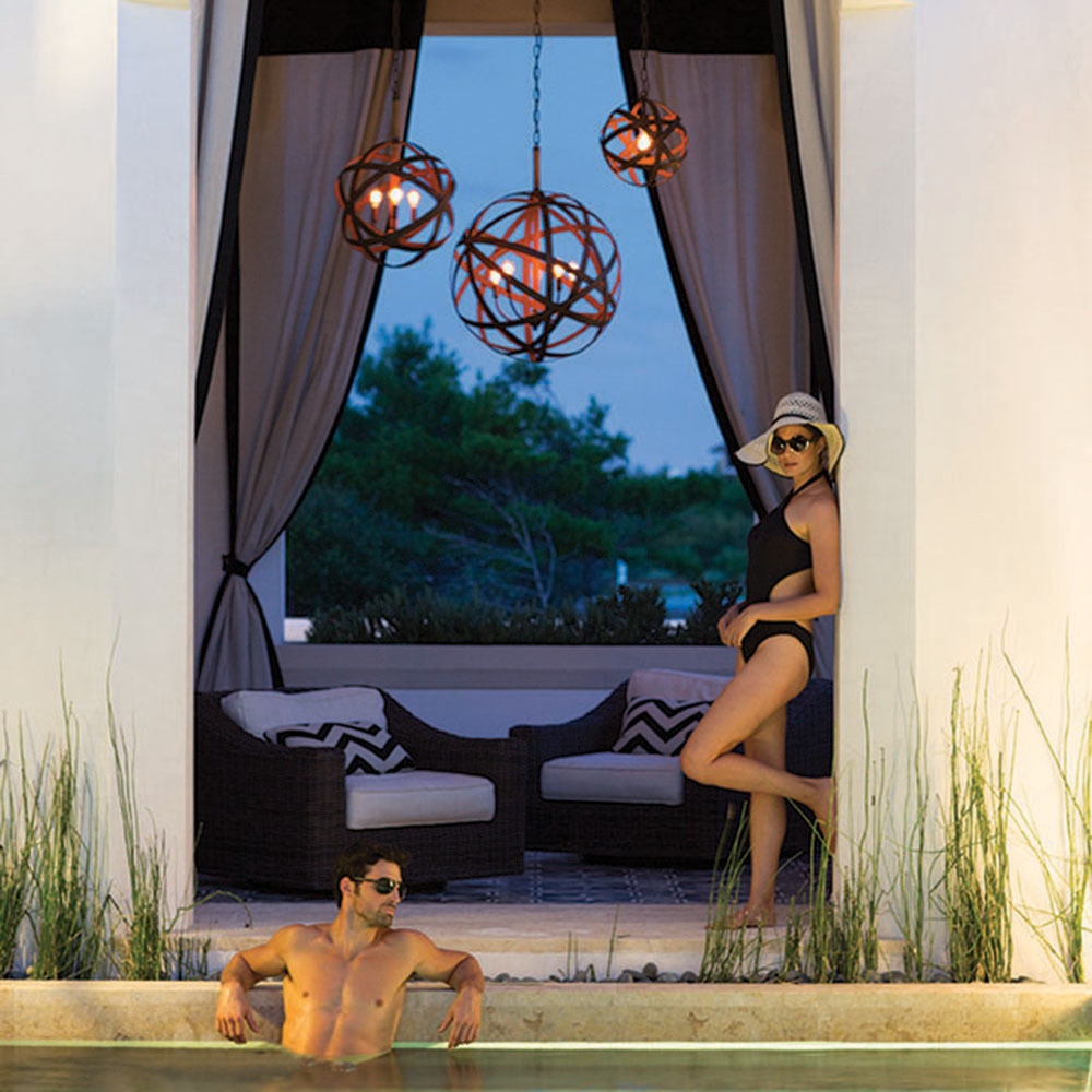 Carson features bold overlapping metal ribbons of Vintage Iron, enhancing an outdoor living area with style and substance. The handcrafted pendants combine a hint of industrial sophistication with the allure of artisan craftsmanship.