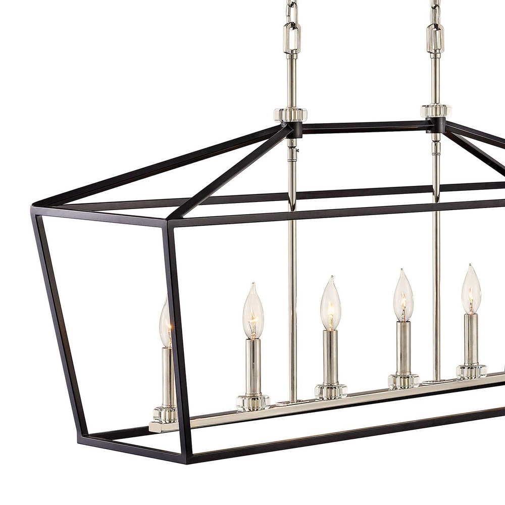 For a classic statement-maker, Stinson hits the mark. A robust open and airy cage, designed for maximum impact in Distressed Brass or Black with Polished Nickel finish, is accompanied by refined sparkling crystal accents to create the perfect mix of traditional appeal and industrial panache.