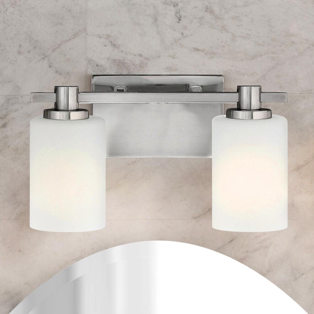 Karlie's clean design is transitional in style and will complement a variety of décor. Featuring precision die-cast cups and cylindrical, etched opal glass, it is available in Brushed Nickel and Chrome.