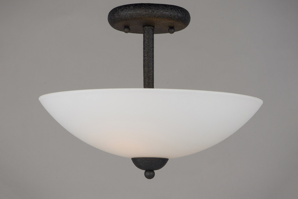 Heavy rectangular tubing support tall scale Satin White glass shades that creates an upscale forged look at a builder price. Available in your choice of Textured Black or Satin Nickel, this collection is complete enough to do the entire home.